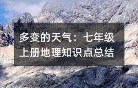七年级上册地理中多变的天气知识点。文章介绍了天气的含义、特点和对人类活动的影响,阐述了天气预报的制作过程和形式,并提到了常用的天气符号。同时,文章还评价了空气质量的高低与所含污染物数量的关系,强调了需要洁净的空气。